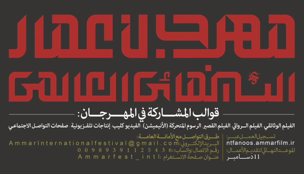 المهرجان الشعبي السادس عشر لأفلام عمّاردعوة المشاركة في قسم الدولی لمهرجان عمّار الشعبی للأفلامأخبارالاثنين 19 نوفمبر 2025بخش بینالملل جشنواره مردمی فیلم عمار با موضوع «آمریکا؛ میداندار جنایت» آغاز به کار کرد. هنرمندان از سراسر جهان میتوانند آثار خود را تا 20 آذرماه 14